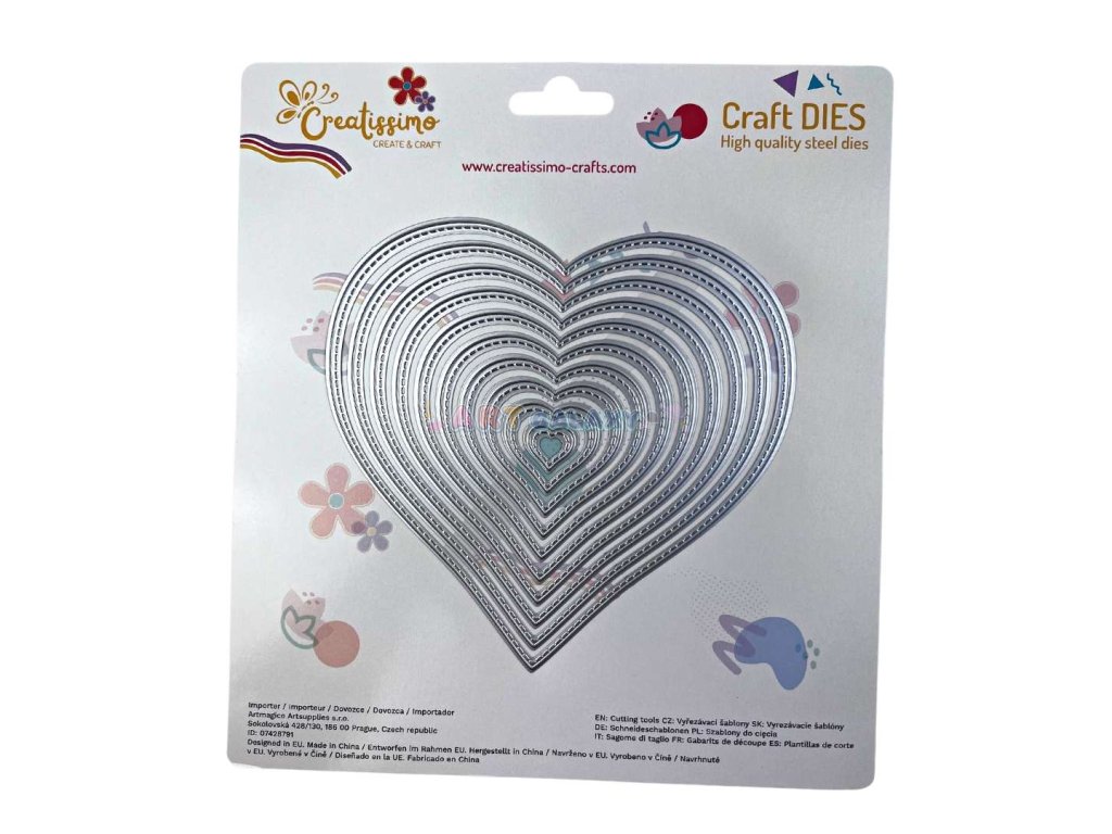 Vyřezávací šablony Creatissimo: Perfektní pro embosování a detailní vyřezávání. Oživte své scrapbooking projekty, pozvánky a dekorace s profesionálním vzhledem díky vyřezávacím šablonám. Šablona v designu Srdce. V balení najdete 10 kusů