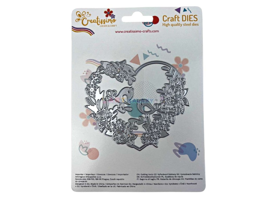 Vyřezávací šablony Creatissimo: Perfektní pro embosování a detailní vyřezávání. Oživte své scrapbooking projekty, pozvánky a dekorace s profesionálním vzhledem díky vyřezávacím šablonám. Šablona v designu Srdíčka s ptáčky