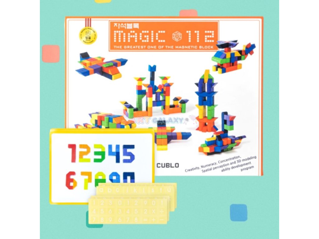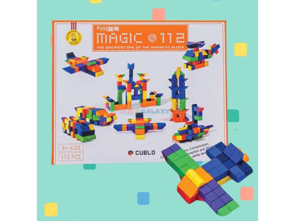 Cublo Magic Cube 112 je magnetická stavebnice se 112 kostkami, trojúhelníky a poloválci pro 3D stavění, matematiku a rozvoj STEM dovedností. Ideální do školky i domů.
