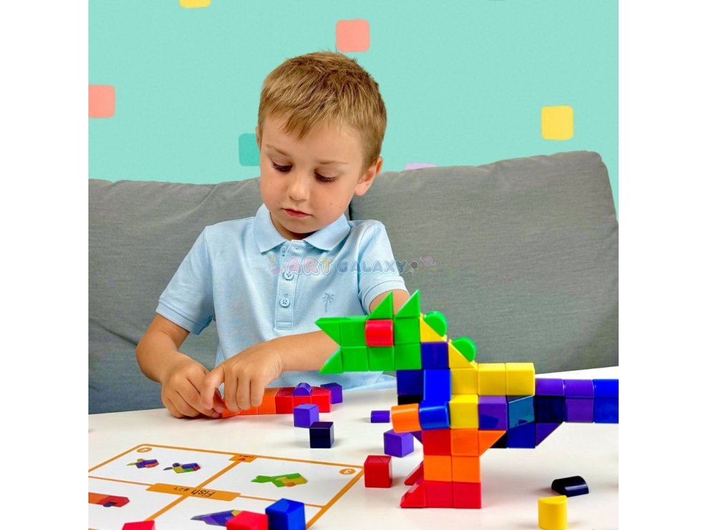 Zároveň rozvíjí jemnou motoriku, soustředění a představivost. Hodí se také do logopedických kabinetů – děti staví a popisují, co postavily, rozvíjejí slovní zásobu i logické vyjadřování.