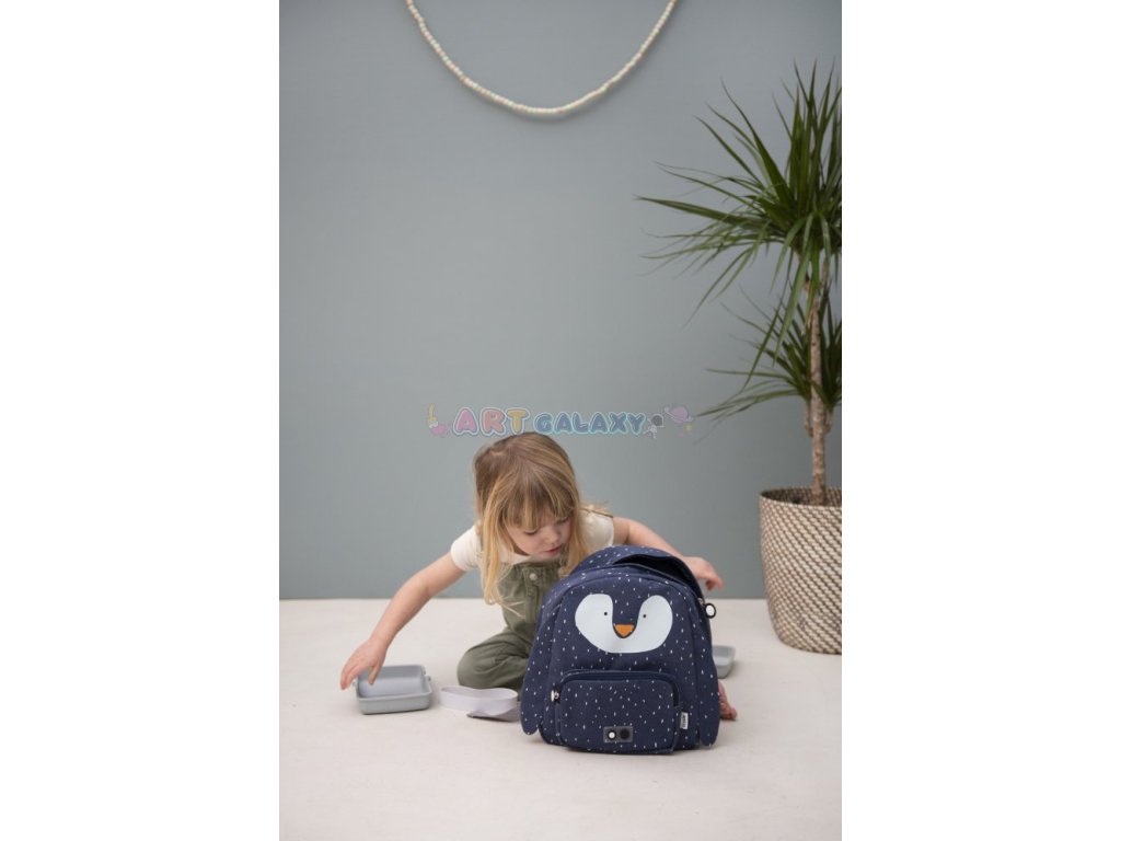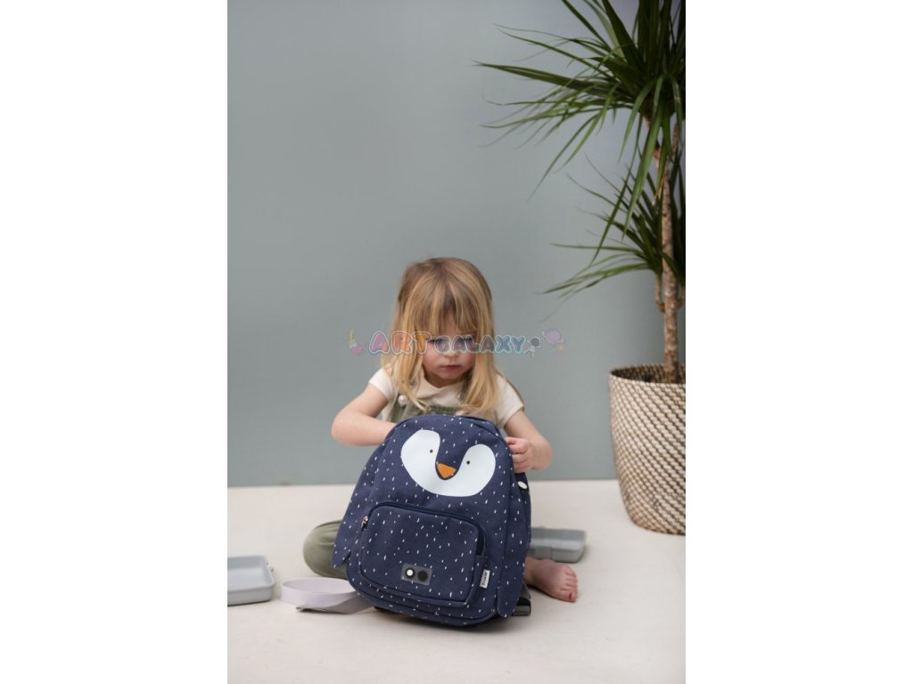 S tímto zábavným batohem tučňáka bude vaše dítě chodit do školy nebo do školky s radostí. Uvnitř má 1 velkou přihrádku se jmenovkou, z venku je praktická přední kapsa na zip. Nastavitelné ramenní popruhy lze pohodlně zapnout zaklapnutím na přední straně, takže batoh neklouže z ramen dolů. Batoh je prostorný a hlavně bytelný.