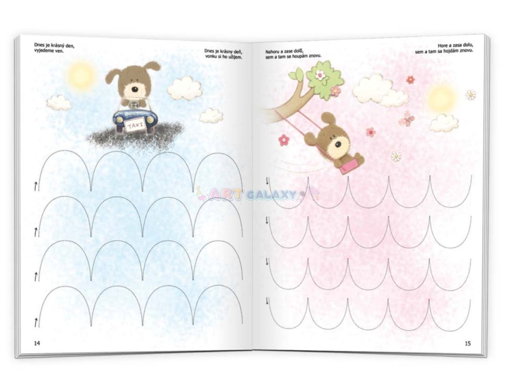 Stíratelný povrch listů nestresuje z neúspěchu a umožňuje zkoušet vše znovu a znovu. Sešit obsahuje uvolňovací cviky doplněné o říkanky. Vhodné pro domácí procvičování. 215 x 275 mm (A4), 16 stran, Věk: 5 - 7