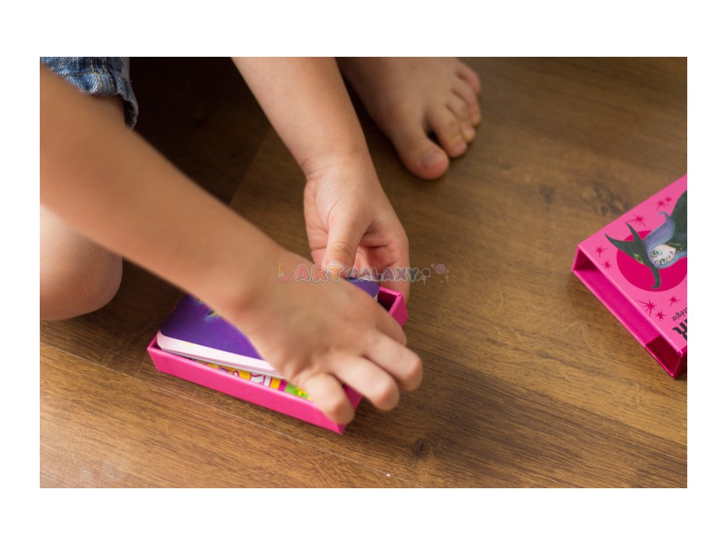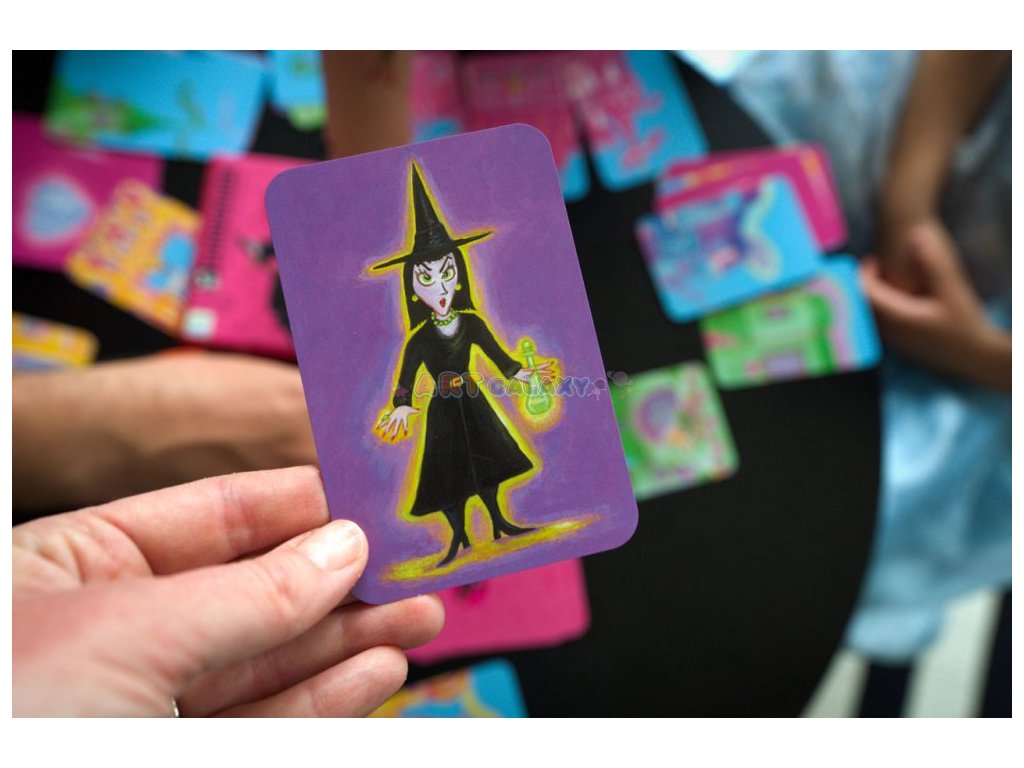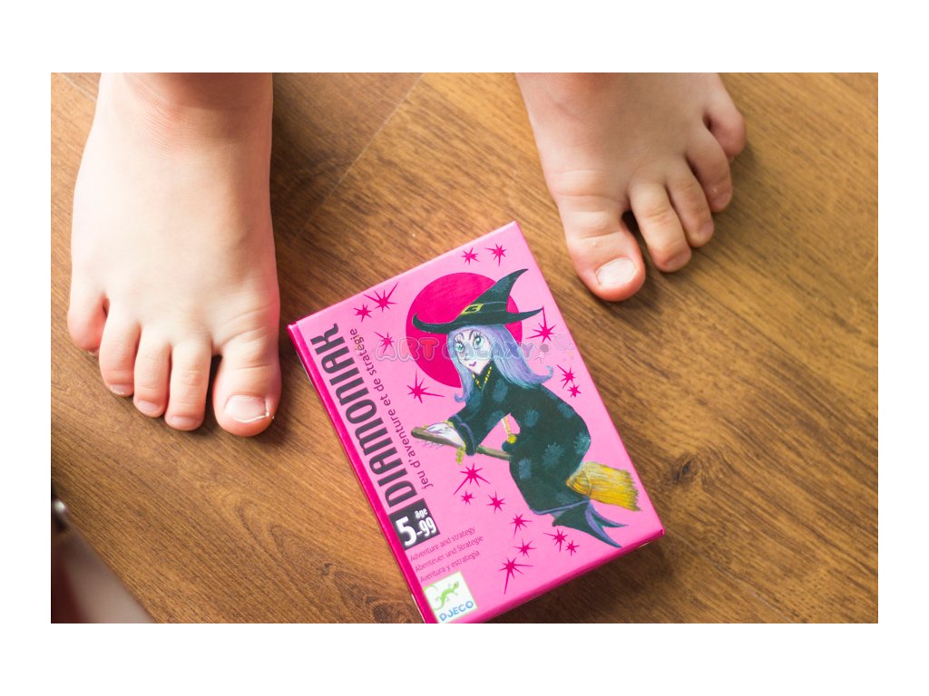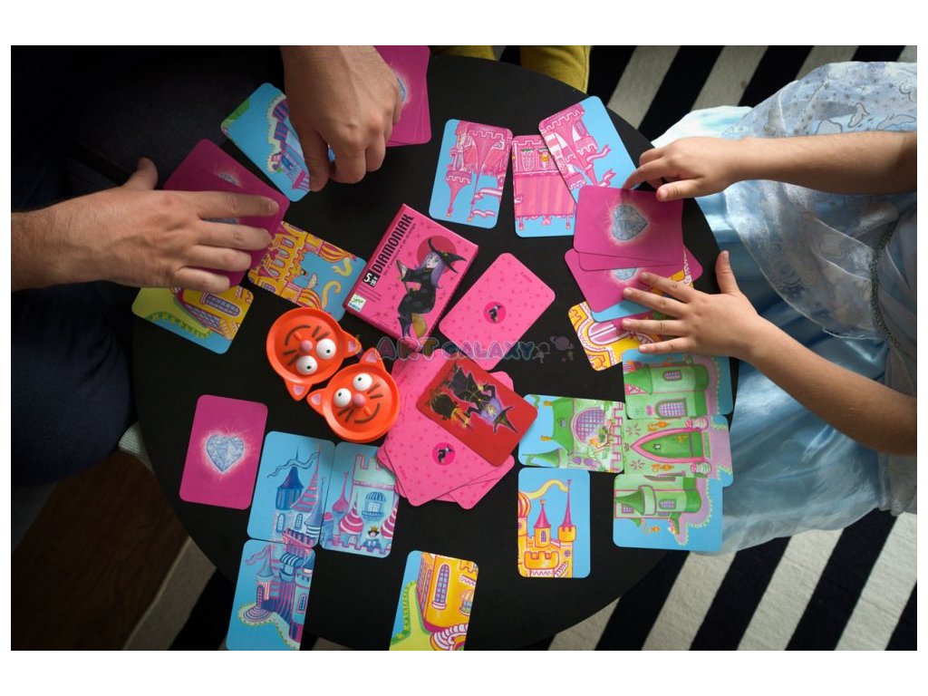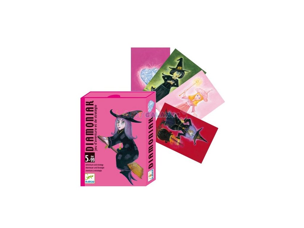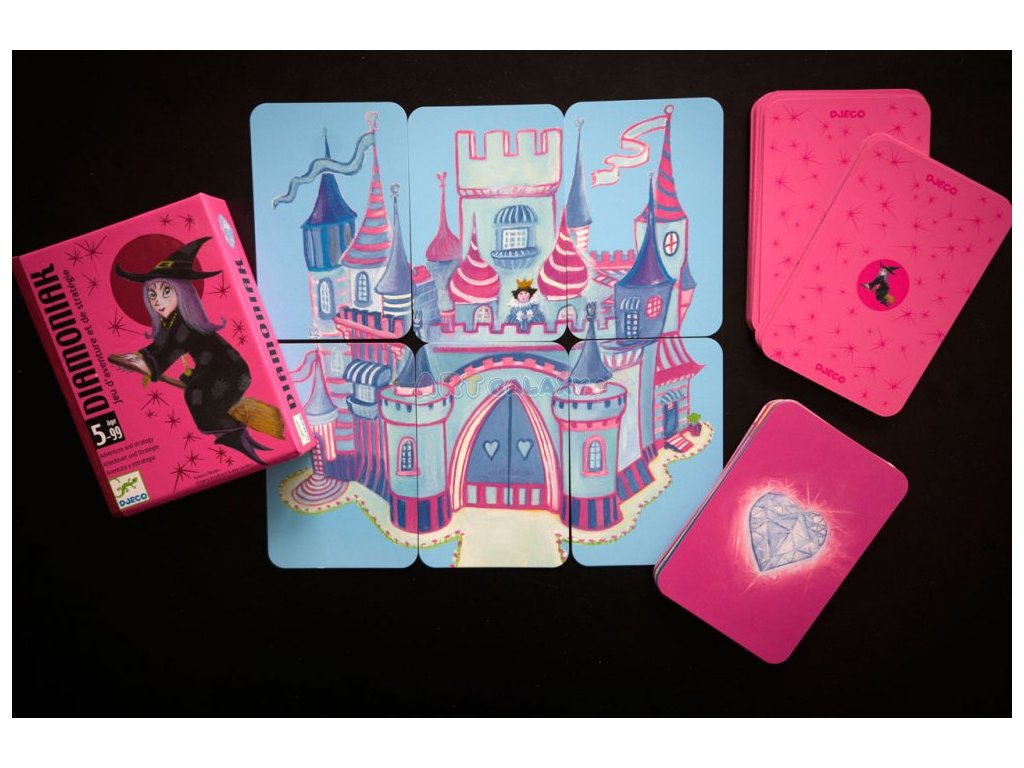 Nádherně ilustrovaná karetní hra. Karetní hra – Djeco – Čarodějky je vhodná pro děti od 5 let. Vítězem se stává ta čarodějka, která si jako první postaví z dílků karet svůj zámek. Čarodějky kupují a vyměňují ty díky hradu, které jim chybí a musí se chránit před útoky ostatních čarodějek.
