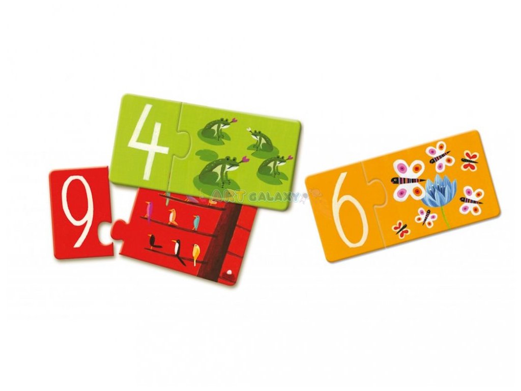 Krásně ilustrované duo puzzle pro děti od 3 let. Puzzle duo Numbers je zábavná logická hra, která děti seznamuje se základními čísly.