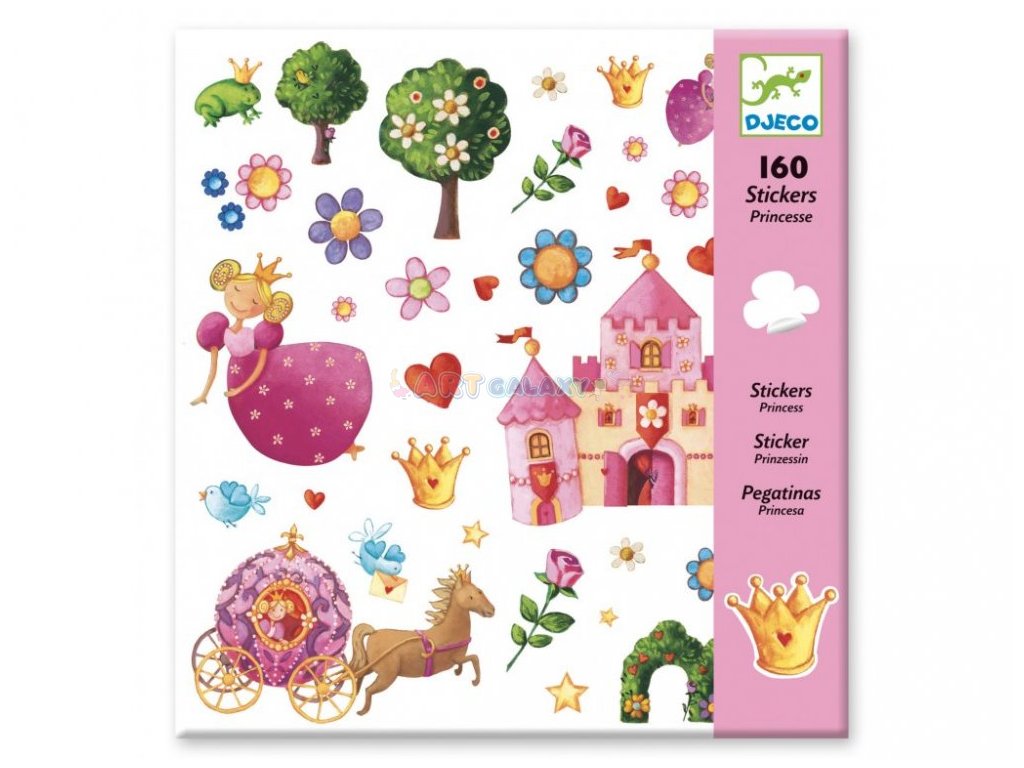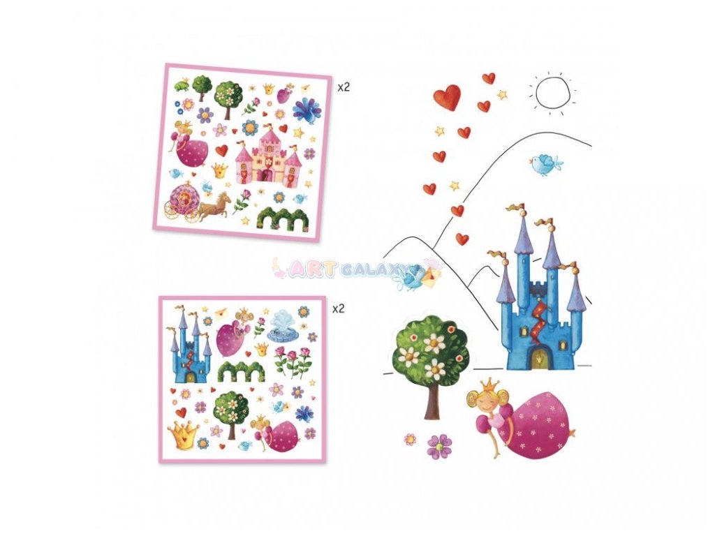 Sada krásných samolepek pro malé princezny. Sestav si svůj pohádkový příběh! Balení obsahuje 4 archy (vždy jsou 2 shodné) se 160 samolepkami v kvalitních deskách.
