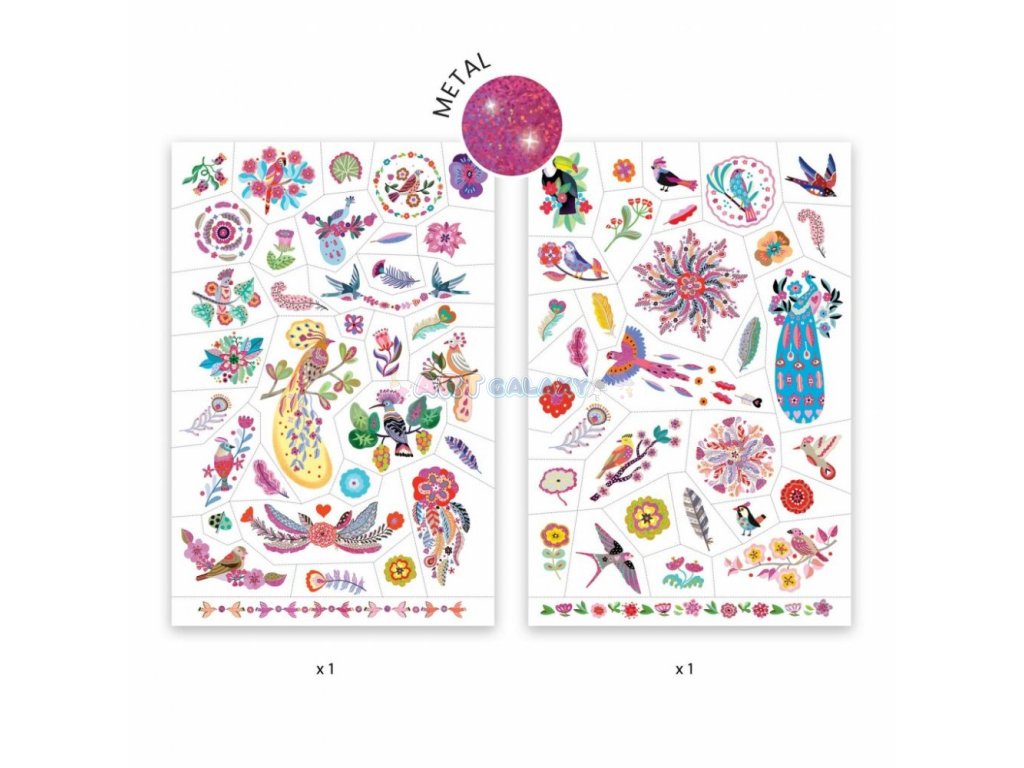 Nové, metalické tetování s krásnými motivy třpytivých ptáků od DJECO.
