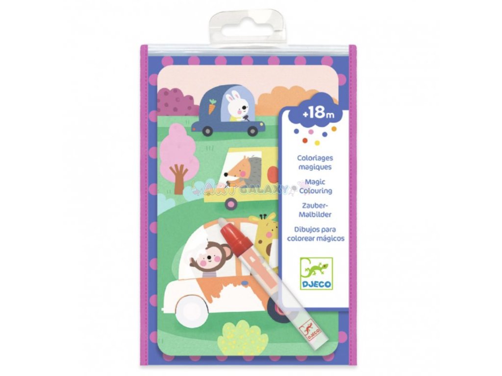 Vodní omalovánky značky Djeco jsou ideální děti od 18 měsíců. Díky vodnímu peru se objeví obrázek, po uschnutí vody lze omalovánky znovu použít. Malování vodou je zábavná činnost, která baví každé dítě. Balení obsahuje 4 ilustrace a jednu magickou vodní tužku. Obrázek se po přetřením magické tužky jako zázrakem objeví, poté ho stačí vysušit a děti mohou malovat stále dokola.