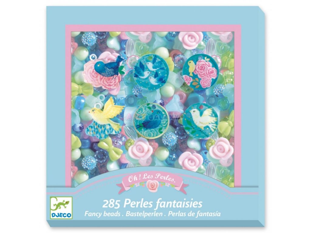 Dřevěné provlékací korále - Djeco - Ptáčci tyrkys