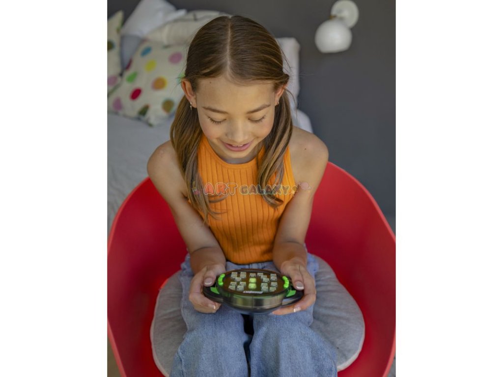 Tato přenosná světelně-zvuková logická hra kombinuje paměť, rychlou reakci a zábavu — ideální pro samostatnou hru i soutěž ve dvou hráčích.