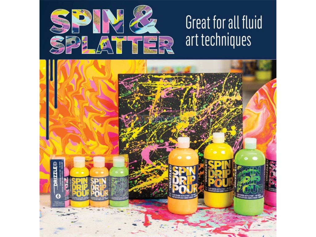 FolkArt Drizzle Premium Neon Lights je sada čtyř předem namíchaných neonových akrylových barev pro pouring. Barvy se snadno aplikují a vytvářejí lesklý, neonový vzhled. Ideální pro různé techniky fluidního umění a vhodné pro použití na různé povrchy.