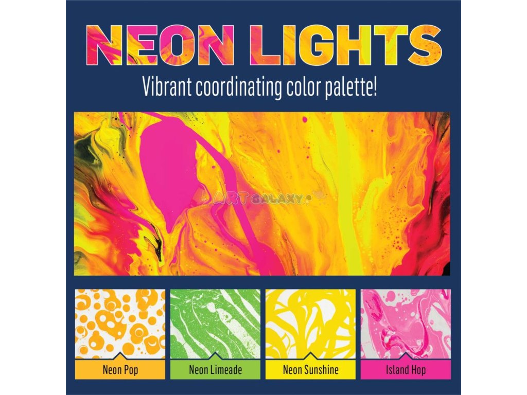 FolkArt Drizzle Premium Neon Lights přináší kreativní zážitek s neonovými barvami, které rozsvítí vaše umělecké projekty. Tato sada obsahuje čtyři 138ml lahvičky s předem namíchanými akrylovými barvami v odstínech Island Hop, Neon Sunshine, Neon Pop a Neon Limeade. Každá z těchto výrazných neonových barev je připravena k okamžitému použití, což usnadňuje aplikaci a umožňuje snadné vytváření působivých mramorových efektů.