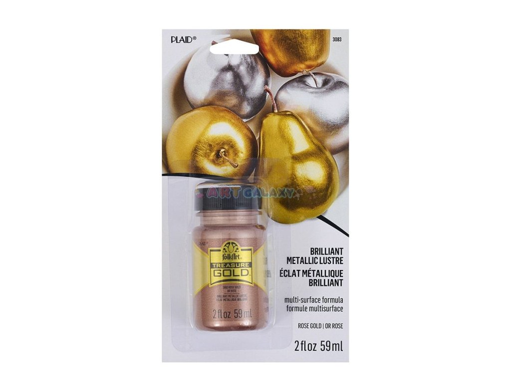 Dodejte svým projektům luxusní vzhled s FolkArt Treasure Rose Gold, akrylovou barvou s intenzivním metalickým leskem. Tato netoxická, vodou ředitelná barva poskytuje úžasný metalický vzhled, který zaručeně dodá vašim dekoracím jedinečný šmrnc. Vhodná pro vnitřní i venkovní projekty, lze ji použít na různé povrchy, jako jsou dřevo, sklo, terakota, plátno, kov a mnoho dalších. Jedna 2 oz lahvička pokryje až 10 čtverečních stop.