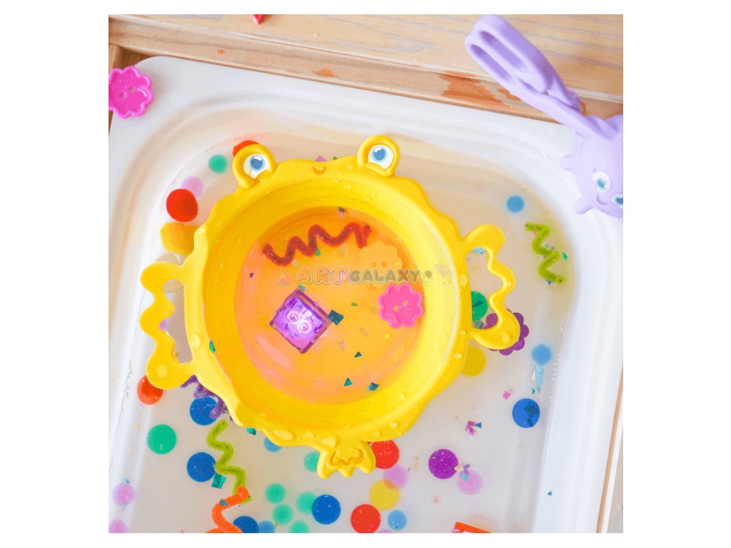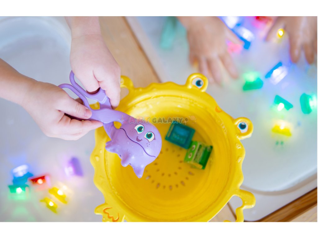 Hračky se Vám budou hodit k procvičení obratnosti prstů a naučení správného úchopu. Podporují také rozvoj koordinace ruka-oko. Hračka bude skvělým doplňkem k dalším hračkám Glo Pals, jako jsou smyslové nádoby nebo kostky, které svítí ve vodě.