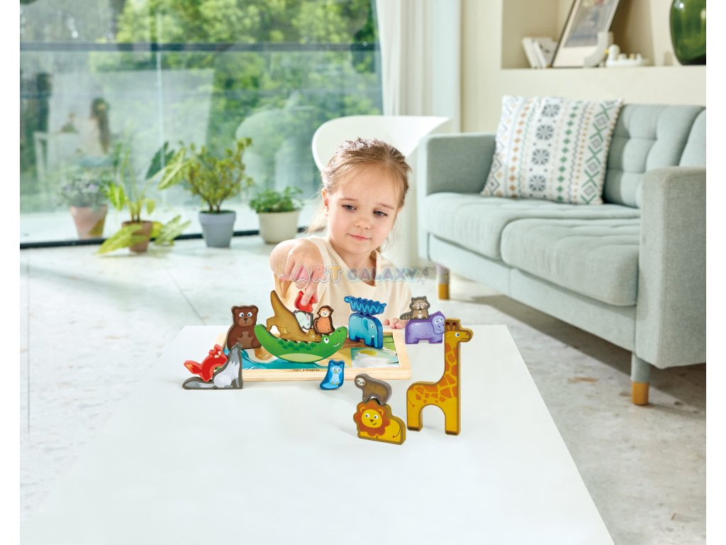 Dřevěné Puzzle s motivem zvířátek od Hape rozvíjí motorické a kognitivní dovednosti. Díky možnosti skládat zvířátka jak na základní desku, tak mimo ni, se rozšiřují možnosti hry a kreativity.
