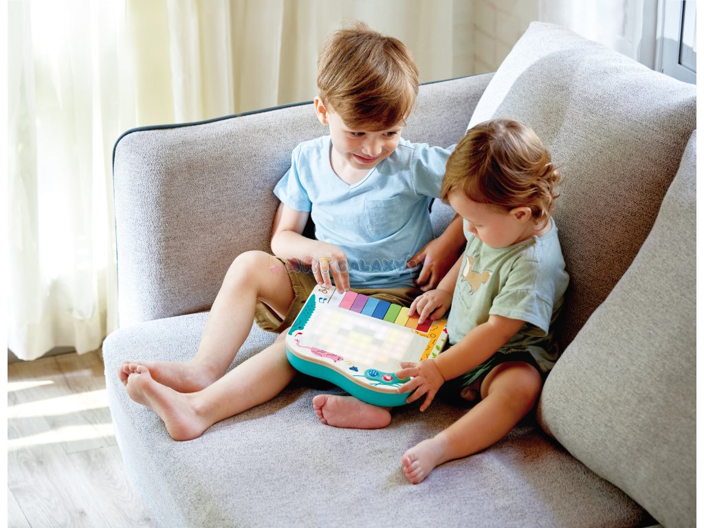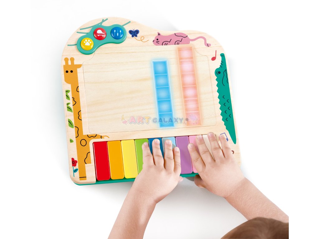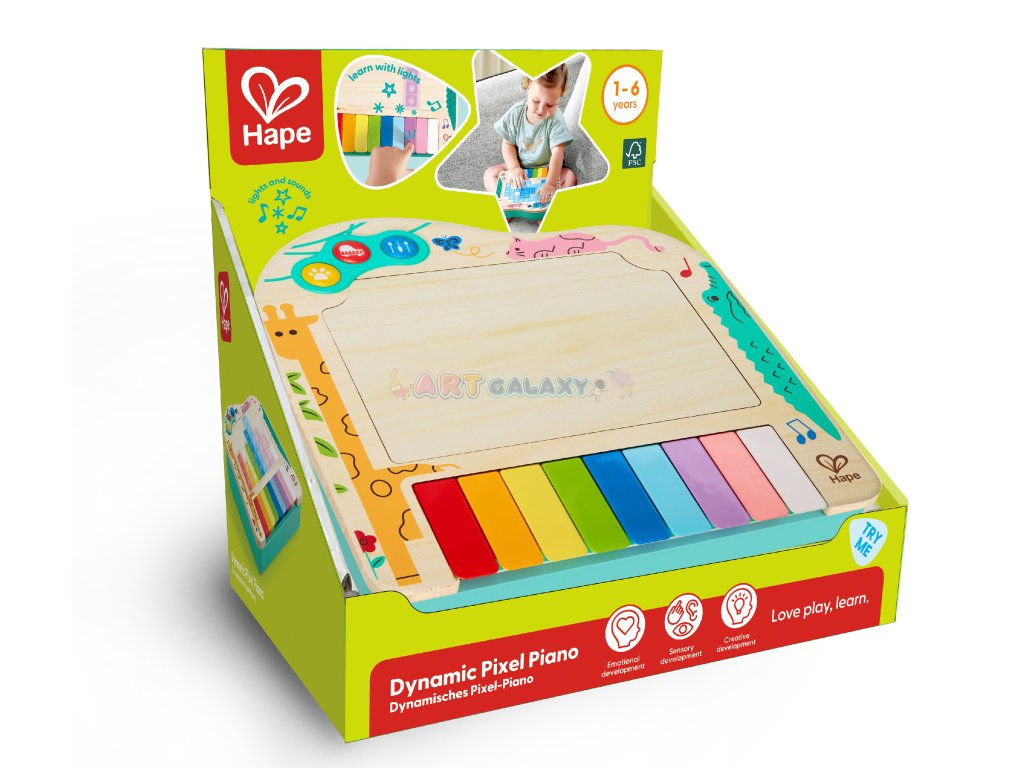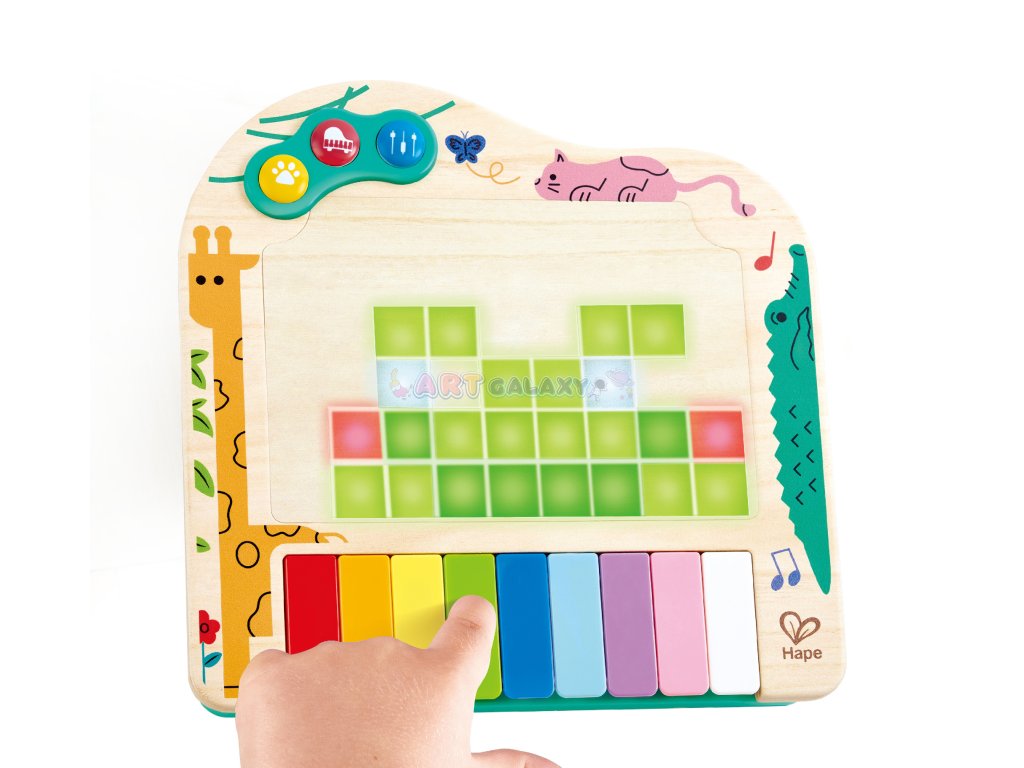 Toto interaktivní dynamické piano od značky HAPE je navrženo tak, aby děti nejen bavilo, ale také přirozeně učilo hudbě. Díky pixelovým světýlkům, která se rozsvěcují nad klávesami, se děti snadno naučí jednoduché písničky a zároveň si procvičují jemnou motoriku, rytmus a sluch.