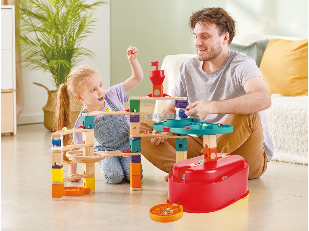 HAPE Quadrilla Stack Track Bucket Set je navržen tak, aby děti zábavnou formou seznámil se základy fyziky a inženýrství. Pomocí různých dílů mohou děti stavět různé dráhy, které simulují principy gravitace a hybnosti. Každý nový design představuje nový problém k vyřešení, což podporuje analytické myšlení a schopnost řešit problémy.arreglatelo.es+11CanaBee Baby+11idealo.de+11