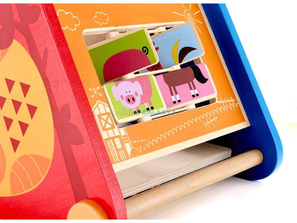 Box je vyroben z odolného a ekologického dřeva, které je natřeno bezpečnými barvami. Navíc má praktické madlo, takže si ho můžete vzít s sebou na cesty, do auta nebo na návštěvu – bez obav z nudy.