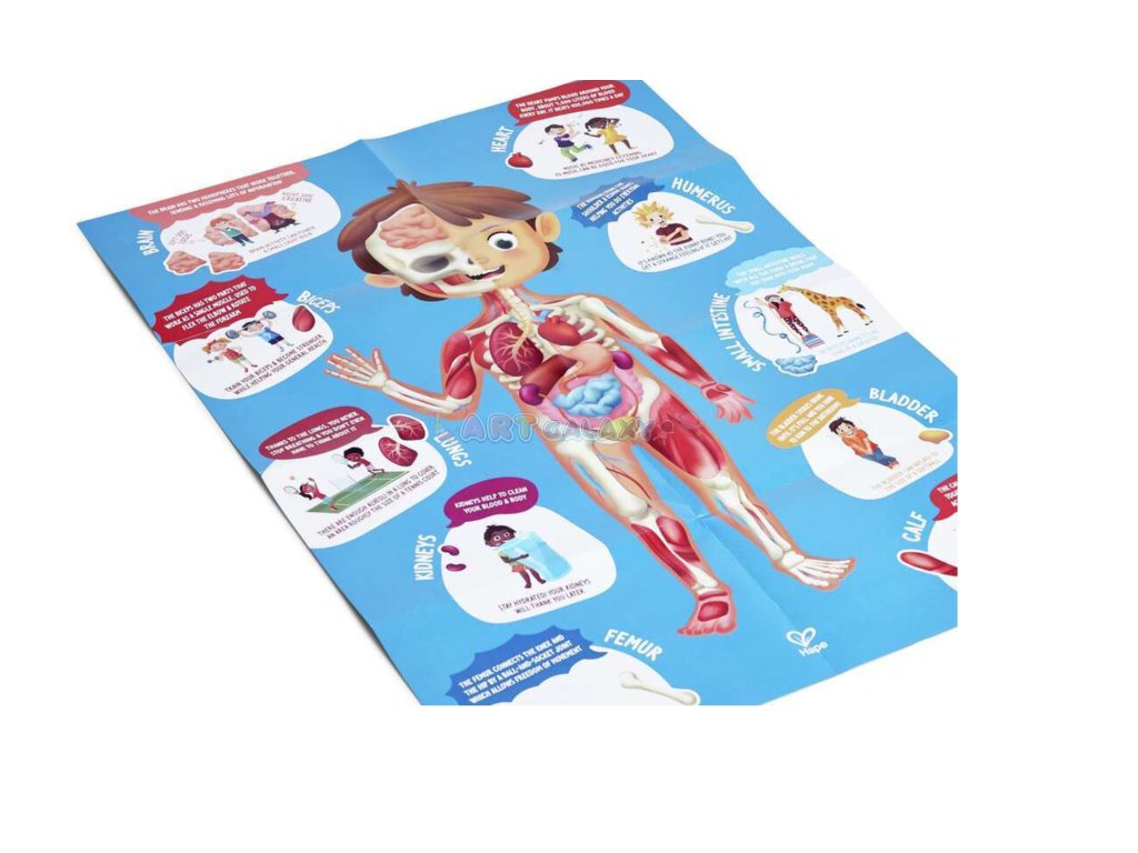 Objevte fascinující lidské tělo s anatomickým puzzle o 50 dílcích, které nabízí nejen detailní ilustrace, ale i 3D modely orgánů. Velký oboustranný plakát v 11 jazycích pomáhá dětem od 4 let snadno pochopit základní anatomii a správné názvosloví. Zábavná a vzdělávací hra, která podporuje rozvoj motoriky, koncentrace i logického myšlení.