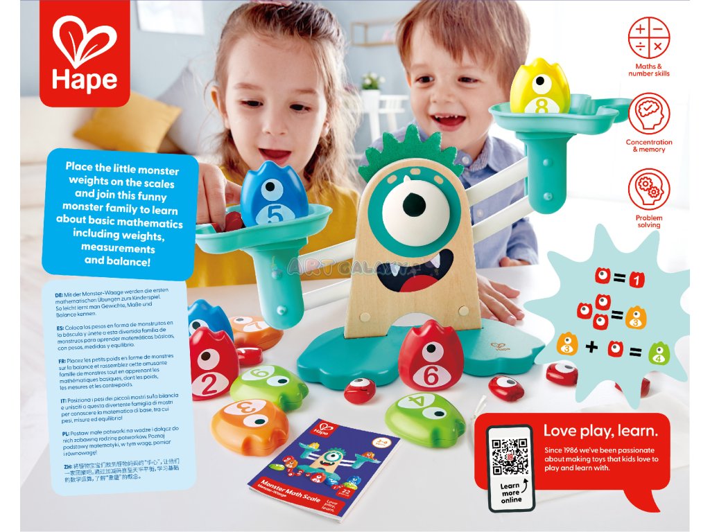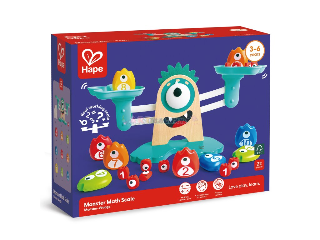 HAPE Váha s příšerkou je hravá vzdělávací hračka, která učí děti základům rovnováhy, počítání a logického myšlení. Díky vtipné příšerce a barevným závažíčkům děti snadno pochopí princip vážení a porovnávání hmotností. Skvělá volba pro děti od 3 let.
