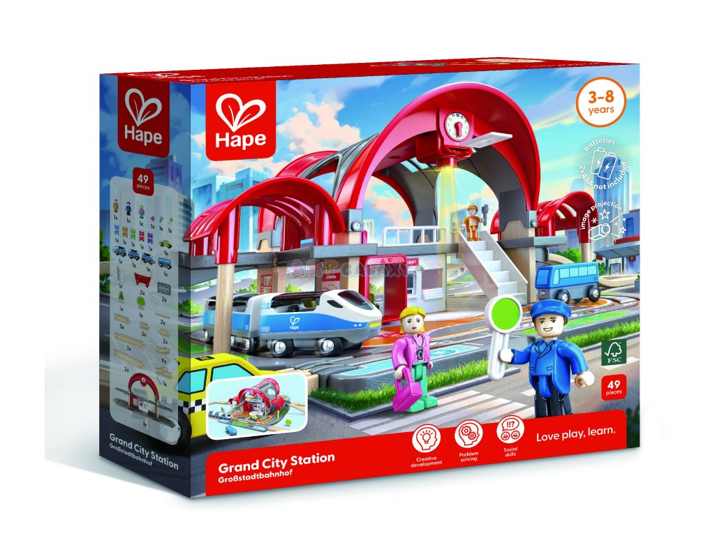 Navštivte nejzajímavější destinace světa s touto rušnou dvoupatrovou stanicí! Je vybavena projektorem, který po vložení pěti speciálních jízdenek zobrazuje obrazy velkých světových měst, a také záznamníkem hlášení stanic.