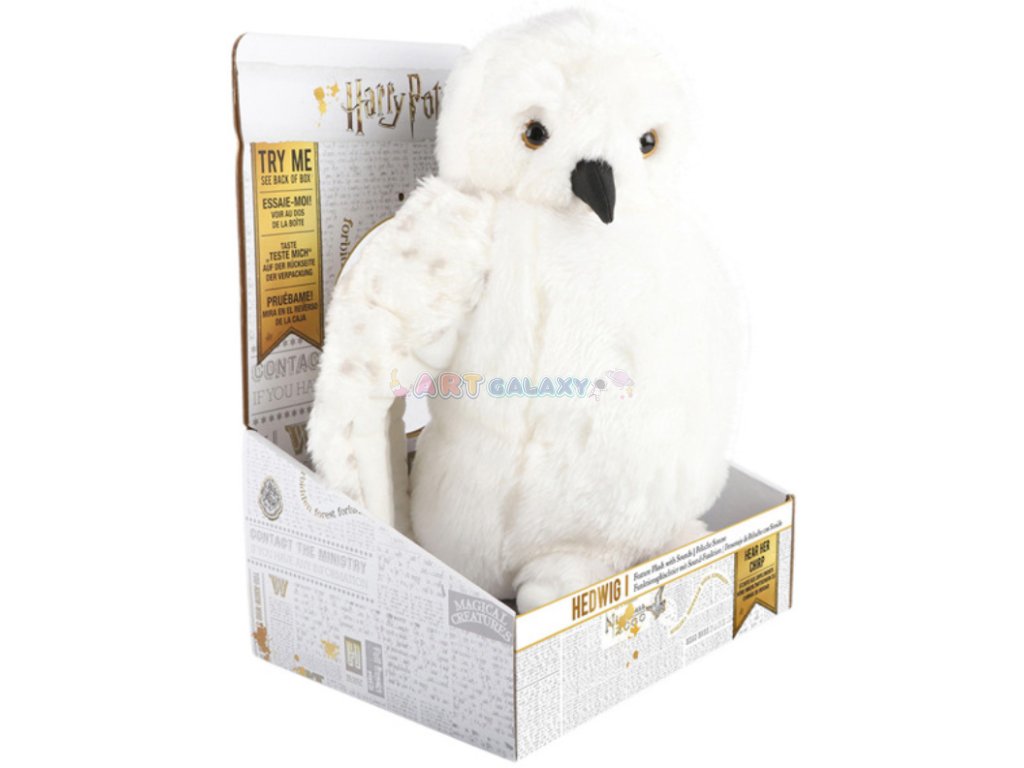Hedvika je také vybavena zvukovým modulem, který po stisknutí tlačítka vydává autentické zvuky, čímž napodobuje chování skutečné sovy. Tento prvek přidává na interaktivitě a kouzelnickém nádechu této oblíbené postavy.