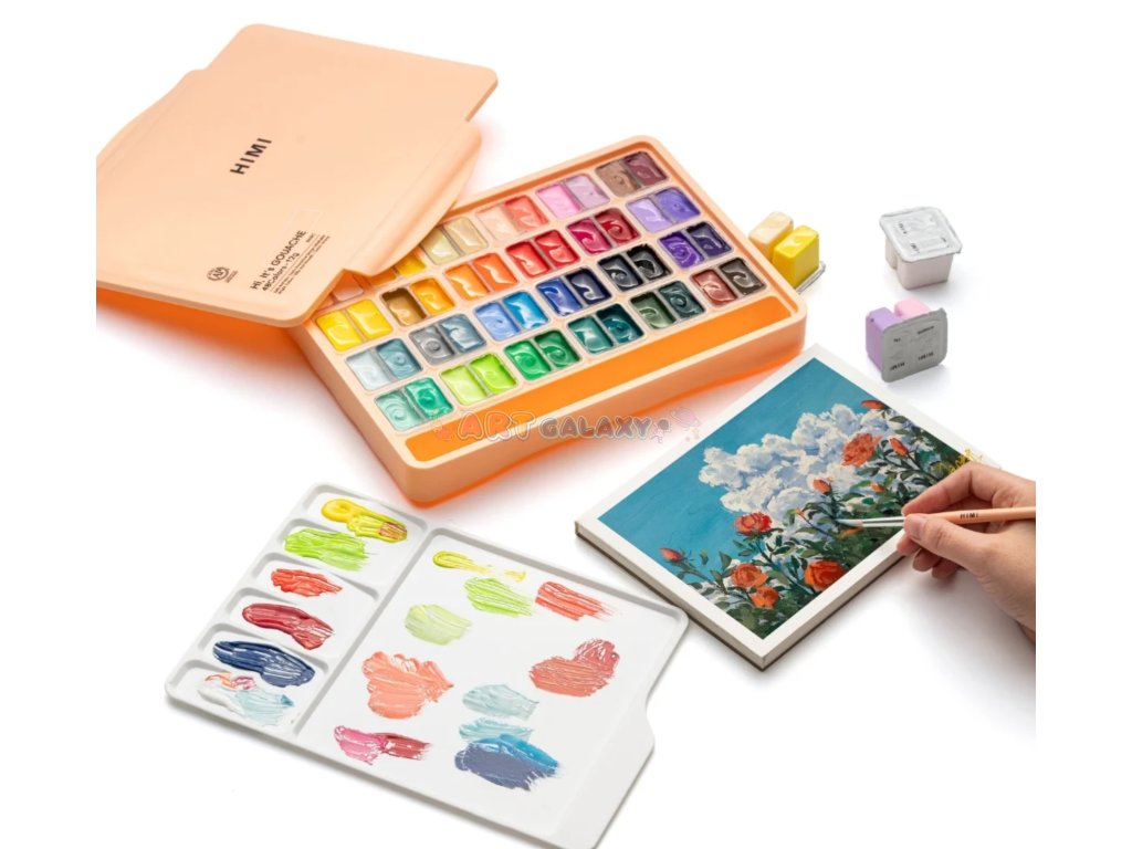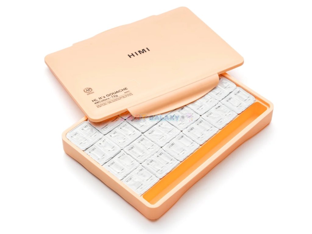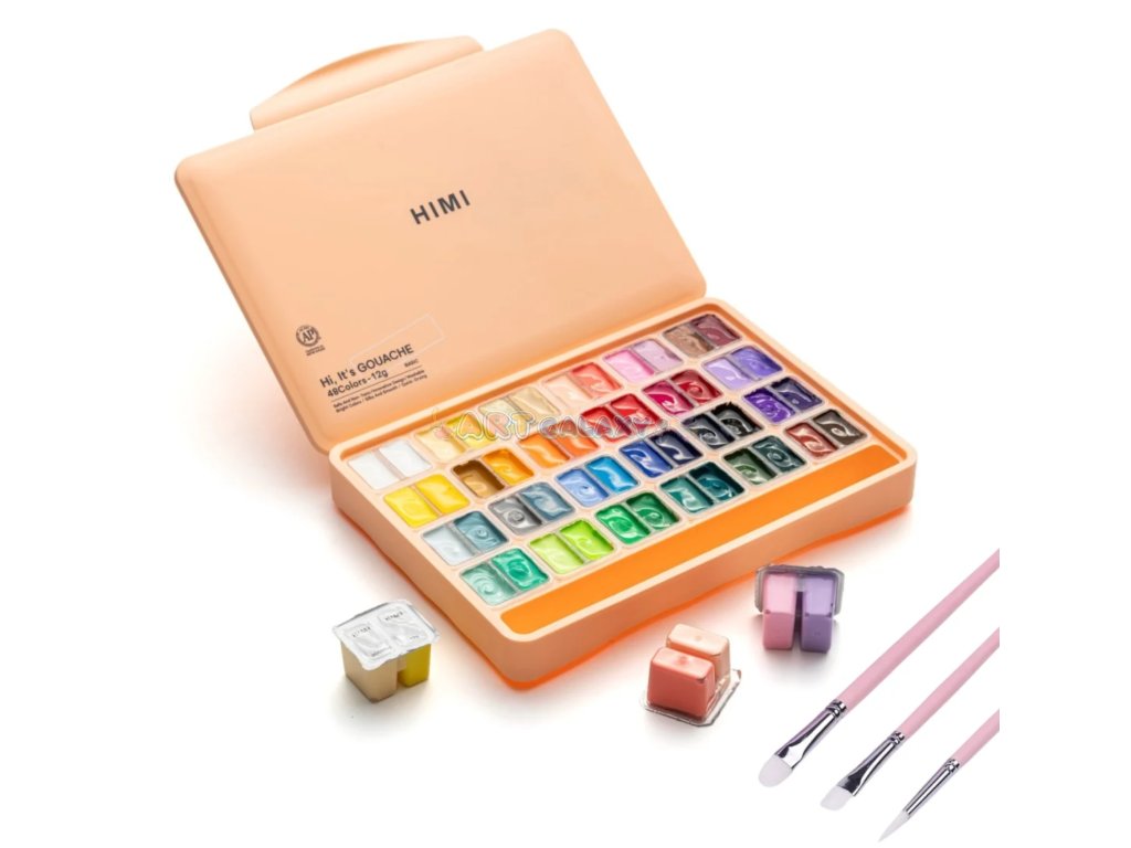 HIMI Twin Cup Gouache Set – 48 barev + 3 štětce v edici Peach Fuzz Case je dokonalým nástrojem pro umělecké duše všech úrovní. Syté, neprůhledné barvy v praktických kelímcích a tři kvalitní štětce v elegantním broskvovém kufříku ti poskytnou vše, co potřebuješ pro tvorbu doma, ve škole i na cestách.