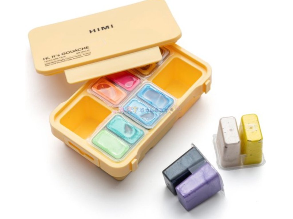 HIMI Twin Cup Metalická gouache sada – 12 barev v žlutém pouzdře
