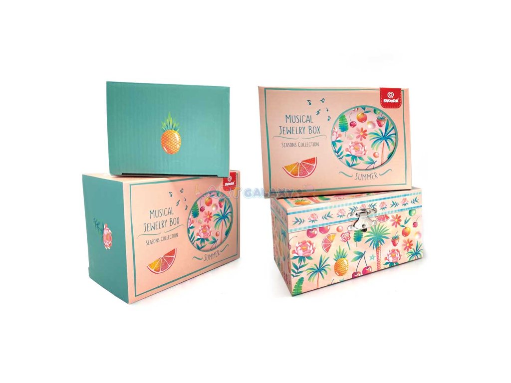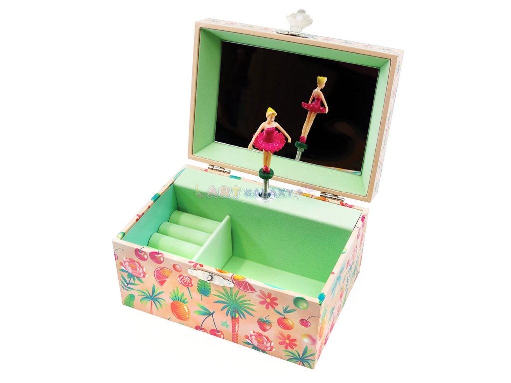 Šperkovnice s točící se baletkou uvnitř nabízí spoustu místa pro uložení vašich drahocenných pokladů. Inspirována řadou Seasons je to krásná malovaná barevná krabička s UV potiskem, která obsahuje široké zrcátko a držák na prstýnky. K dispozici ve 2 provedeních.
