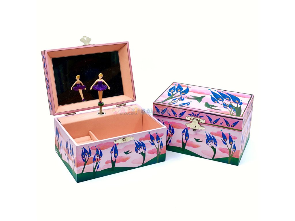 Šperkovnice s točící se baletkou uvnitř nabízí spoustu místa pro uložení všech vašich oblíbených pokladů na jednom místě. Je inspirována řadou Ethereal, je to krásná malovaná barevná krabička, která obsahuje nové široké zrcátko a držák na prstýnky, který vám pomůže udělat pořádek ve vašich drahocenných špercích. K dispozici ve 2 provedeních.