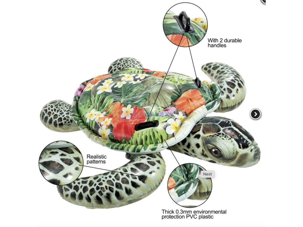 Zažijte zábavu na vodě s realistickou želvou od Intex! Toto velké nafukovací vozítko ve tvaru želvy přináší pohodlí, stabilitu a jedinečný design, který zaujme děti i dospělé. Ideální společník na dovolené, u bazénu nebo na pláži.