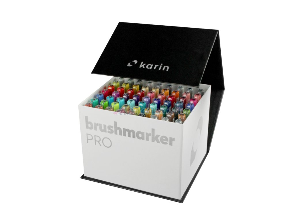 Karin Brushmarker Pro jsou jedinečné akvarelové fixy na vodní bázi. Fixy mají kvalitní štětcový hrot a až 72 odstínů, které je možné vzájemně míchat a nechat vzniknout dalším odstínům. MEGA BOX 60 ks + 3 ks blenderů. Popisovače jsou vyráběny technologií “tekutý inkoust” a díky tomu umožňují 100% spotřebu barvy. Jedinečný akvarelový inkoust má intenzivní kvalitní barvy a velmi odolný a flexibilní nylonový štětcový hrot vhodný jak pro moderní kaligrafii, tak pro malbu, kde je možné je rozpíjet vodou. Brushmarkers Karin jsou vyrobeny v Japonsku.