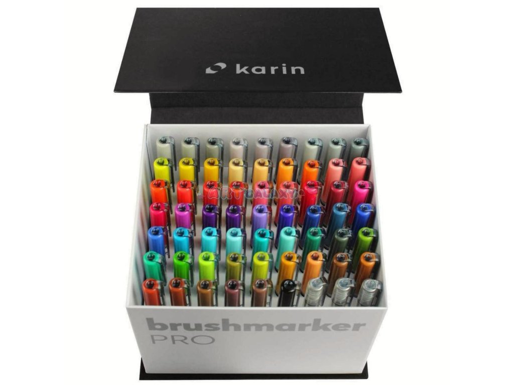 Karin Brushmarker Pro jsou jedinečné akvarelové fixy na vodní bázi. Fixy mají kvalitní štětcový hrot a až 72 odstínů, které je možné vzájemně míchat a nechat vzniknout dalším odstínům. Mega box balení.