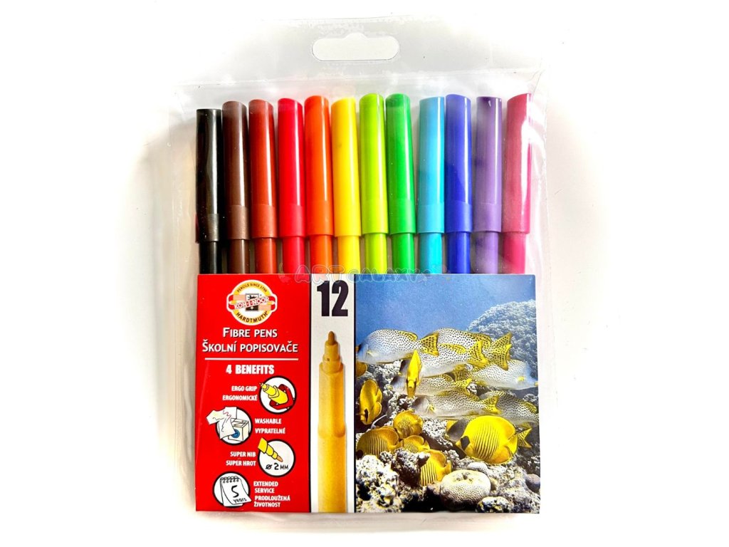 Školní popisovače zn. KOH-I-NOOR mají trojhranný ergonomický úchope a jsou opatřeny bezpečnostním chránítkem, které umožňuje dýchání i v případě spolknutí. Jsou plněné pestrými vypratelnými inkousty a vyrobeny z materiálů zajišťující odolnost proti vyschnutí minimálně 5 let. Hroty odolné proti zatlačení umožňují psát a malovat stopou šířky 1 – 2 mm, délka 600 m. Fixy jsou ideální do školního penálu a na dětské výtvarné projekty. Jsou skvělé i na doma či do kanceláře.