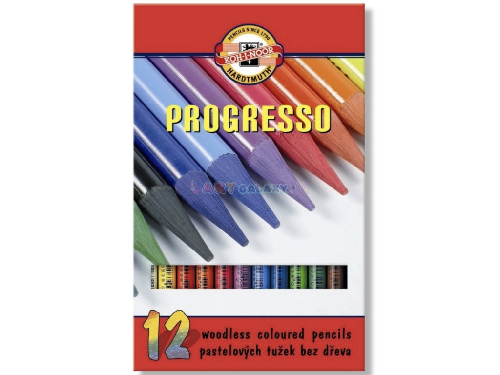 Tradiční pastelky Progresso zn. KOH-I-NOOR jsou jedinečné v tom, že neobsahují dřevěný plášť, jedná se pouze tuhu v tvrdém laku. Výborné pastelky pro kresbu a stínování.