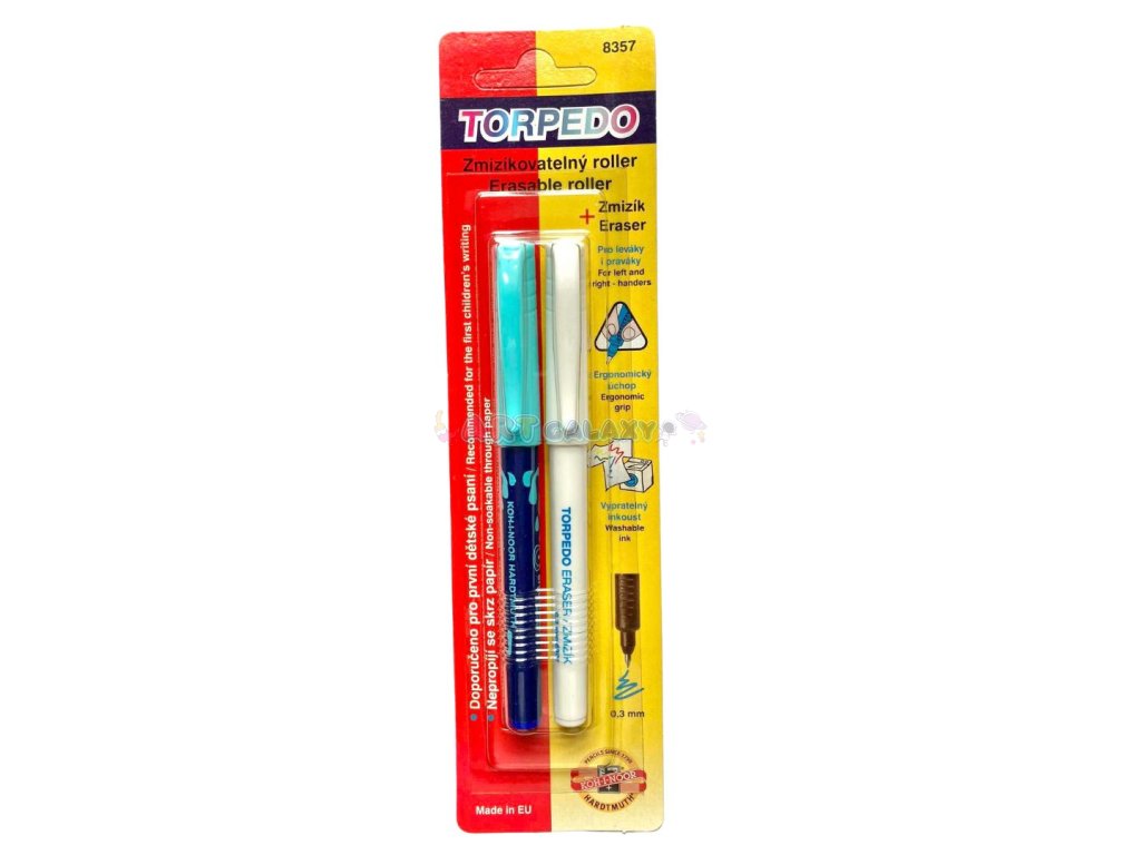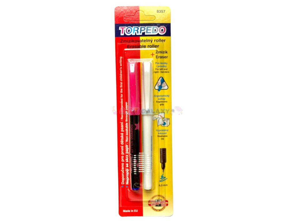 Roller Torpédo zn. KOH-I-NOOR je ideální mezi-článek mezi plnícím perem a klasickou propiskou. Je vhodné pro mladší školáky na prvních stupních, milovat ho ale budou i ti starší žáci a studenti. Zde ho máme v sadě i se zmizíkem!