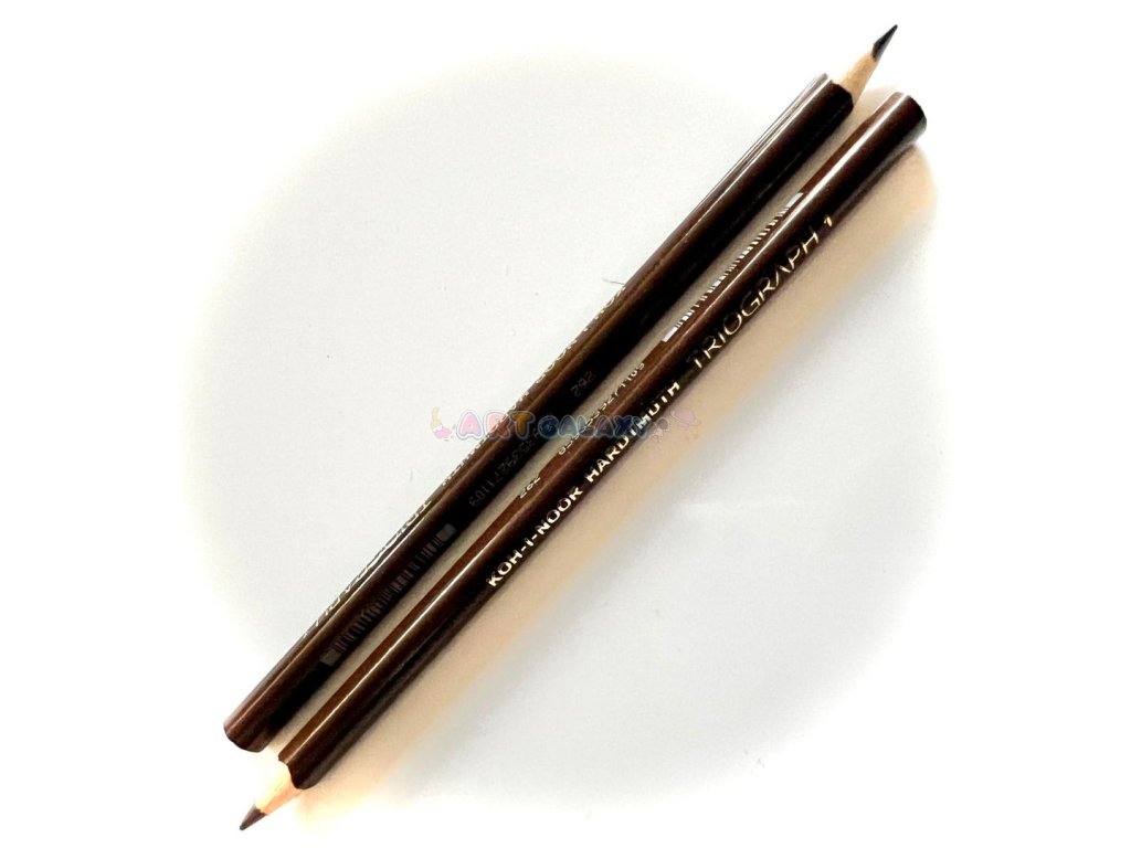 Trojhranné grafitové tužky zn. KOH-I-NOOR v tmavě hnědém provedení mají ergonomický tvar, jenž umožňuje optimální držení a vedení tužky.