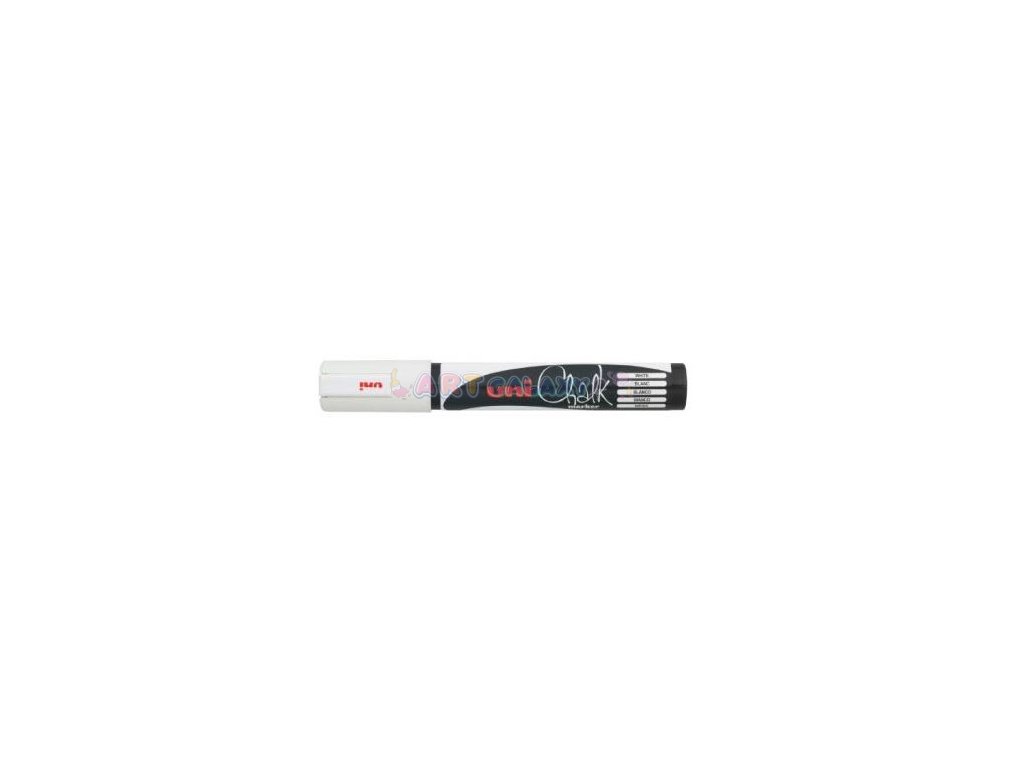Křídový popisovač Uni Chalk s kulatým hrotem 1,8 - 2,5 mm je určen na popis výloh, oken, zrcadel a kovových či plastových povrchů.