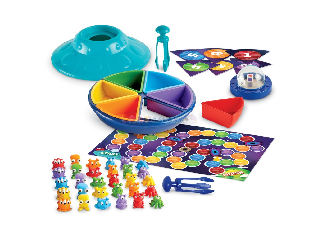 Děti si vylosují úkol pomocí barevné nebo číselné kostky a pak pomocí kleští třídí mimozemšťany do příslušných částí vesmírné lodi. Hra rozvíjí nejen matematické dovednosti, ale také trpělivost, přesnost a schopnost logického uvažování.