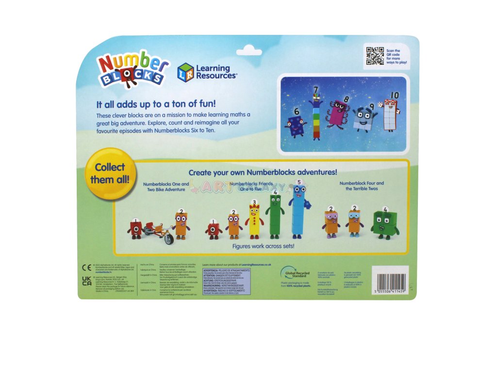 Sada Numberblocks® Přátelé od šesti do deseti rozšiřuje svět Číselné země o další nové kamarády. Tyto barevné, zábavné a přátelské figurky navazují na sérii One to Five a přinášejí ještě více možností, jak si děti mohou osvojit matematické základy hravou formou.