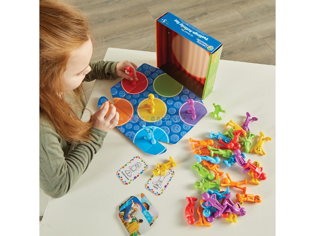 Sada Vše o mně – pocity od Learning Resources® přináší ideální nástroj pro rozvoj sociálně-emočních dovedností u nejmenších. Barevné plastové žetony znázorňují šest základních emocí pomocí přátelských obličejů, které děti snadno pochopí a pojmenují. Díky různým barvám je možné s žetony také třídit, přiřazovat nebo počítat, čímž se učí více dovedností najednou.