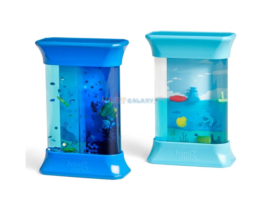 - Obsah balení: Dvě senzorické lahve s efektem oceánu, průvodce s nápady na aktivity
