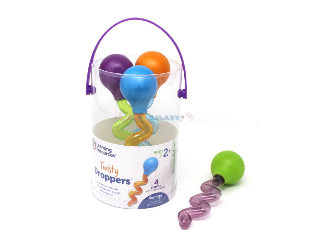 Kapátka Twisty Droppers™ jsou ideálním nástrojem pro rozvoj jemné motoriky u malých dětí. Díky své měkké baňce, kterou děti mohou snadno stisknout, pomáhají rozvíjet sílu rukou a koordinaci pohybů. Jsou skvélé pro různé vědecké pokusy a zábavné hry ve vodě, například při koupání.