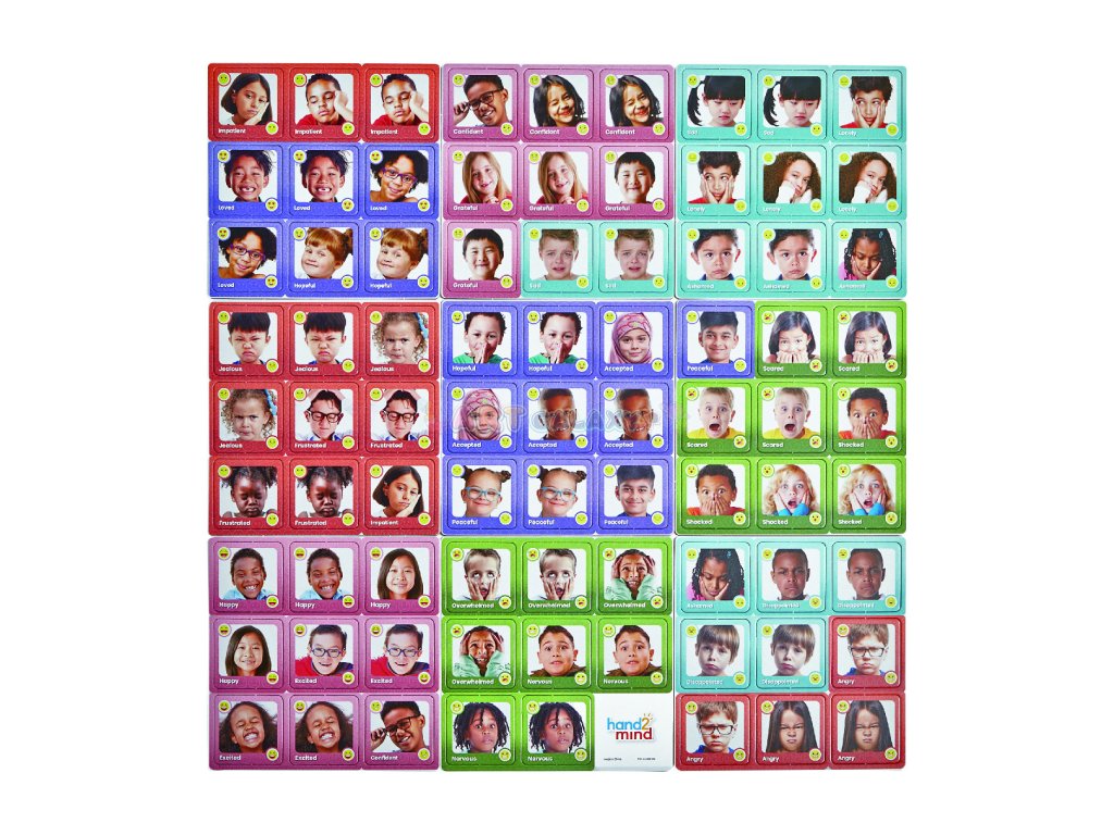 Tato didaktická hra pomáhá dětem lépe porozumět emocím a vyjadřovat vlastní pocity. Hráči otáčejí kartičky, hledají dvojice se stejným výrazem a pojmenovávají jednotlivé emoce.
