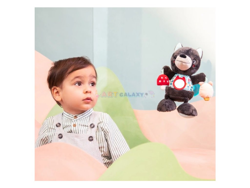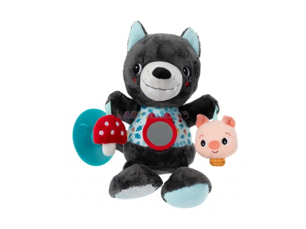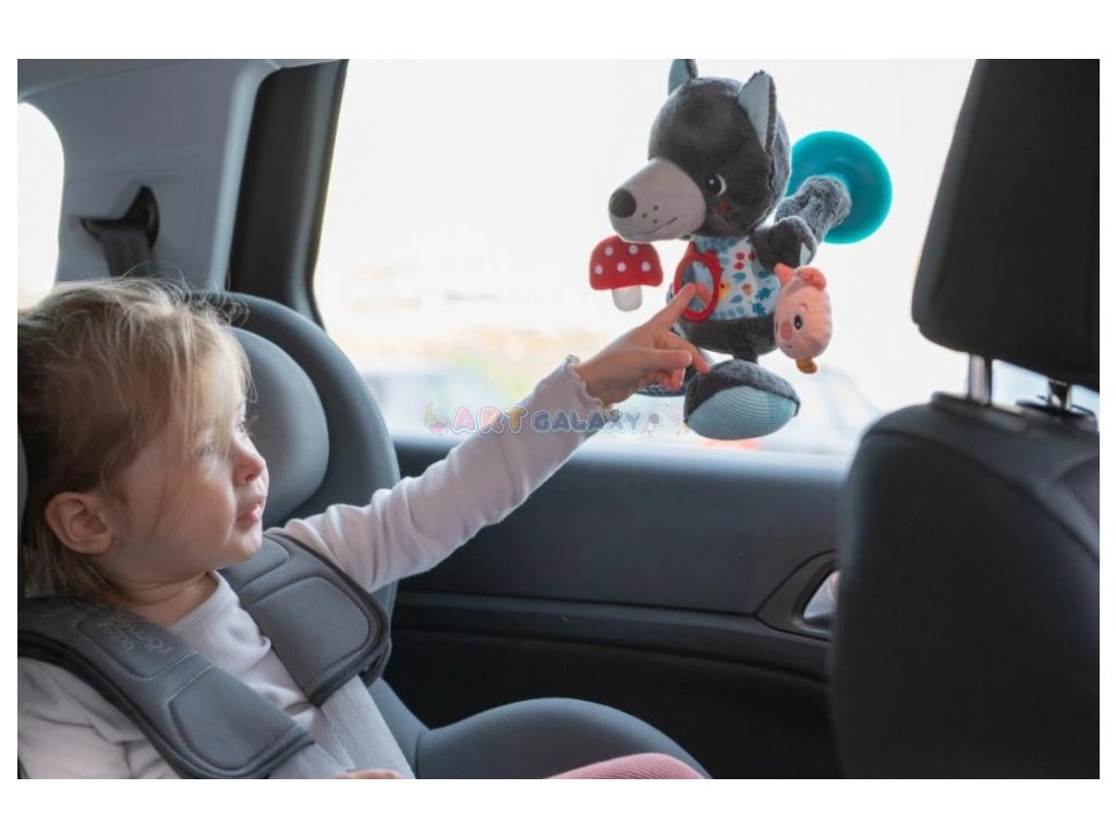 Plánujete výlet autem a potřebujete zabavit děti? Plyšová hračka vlk Ludvík díky přísavce přilne k oknu auta, vlaku nebo letadla, aniž by spadla. Nabízí řadu aktivit, včetně zvuků a textur a odrazů světla, které zabaví dítě během cesty. Hračka rozvíjí jemnou motoriku a smysly. Určeno pro děti od 6 měsíců.