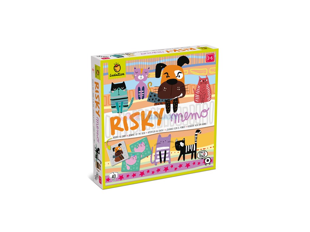 Chcete si trochu zpestřit pexeso?! Risky pexeso - Ludattica - Pozor pes - 40 dílů je vhodné pro děti od 4 let. V balení jsou totiž 2 karty, které když otočíte, musíte buď všechny karty na stole přeházet nebo hráč jedno kolo musí stát. Krásně ilustrované pexeso je v dárkovém balení, které zároveň slouží jako krabička pro uschování kartiček.