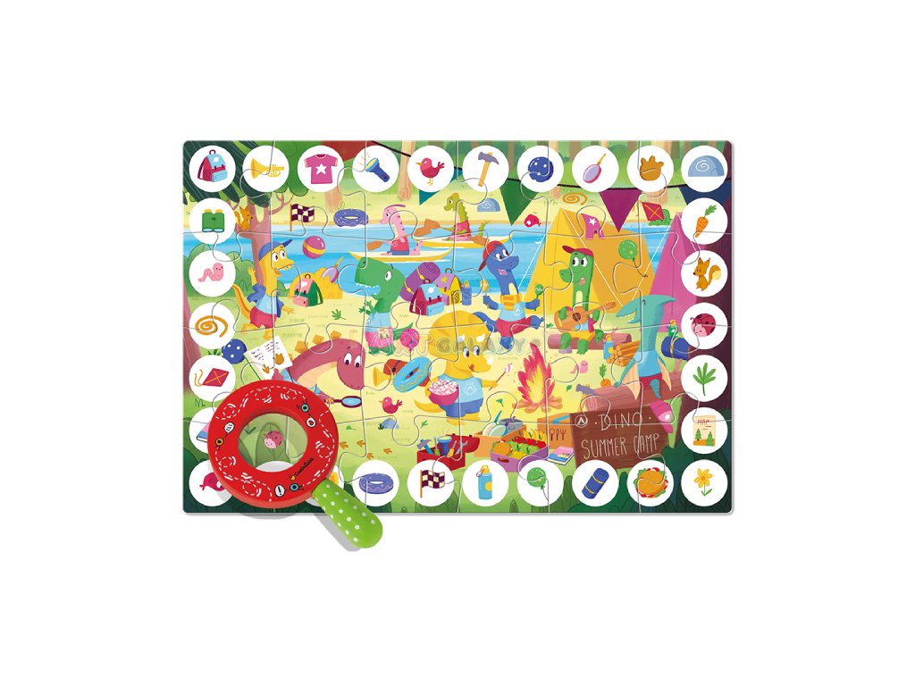 Obrázek této skládačky byl speciálně navržen tak, aby rozvíjel pozornost a pozorovací schopnosti malých i starších dětí. Po sestavení skládačky hra pokračuje detektivní hrou! Pomocí speciální dřevěné lupy můžete objevit všechny skryté prvky na obrázku!