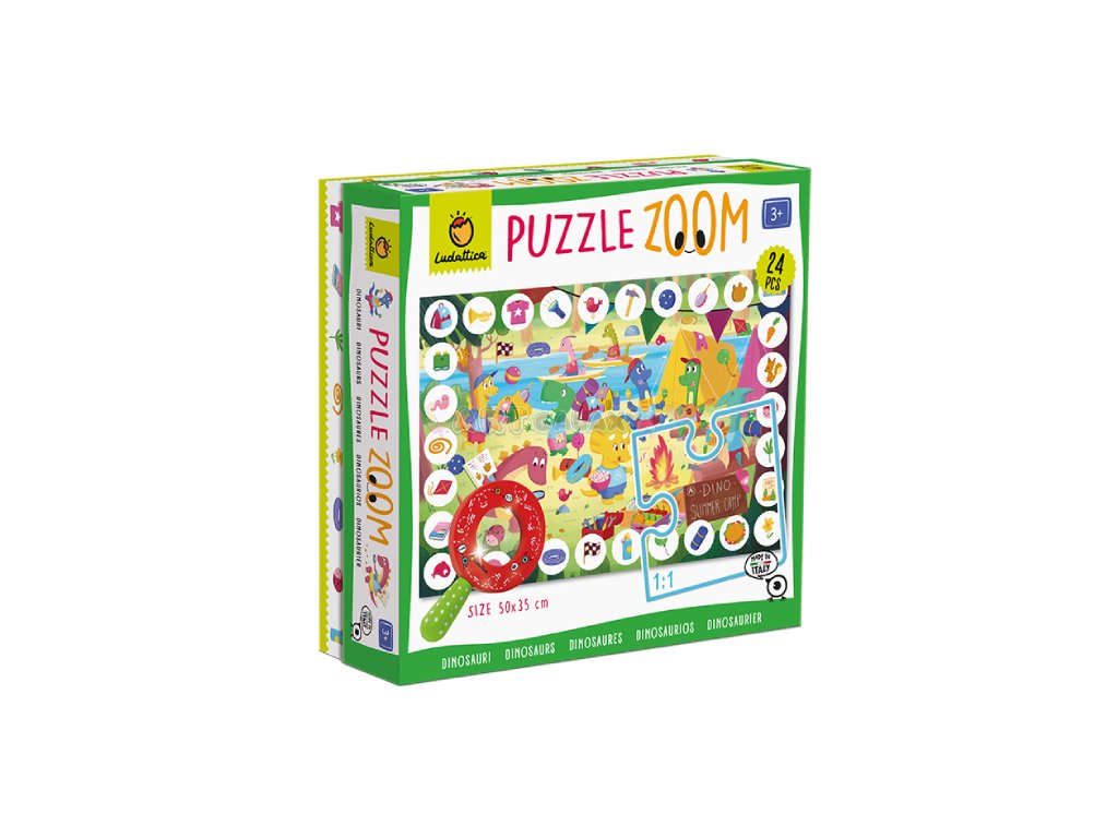 Tajemné nádherně ilustrované puzzle s lupou! Odkrývací puzzle – Ludattica – Dinosauři – 24 dílů je vhodné pro děti od 3 let. Puzzle má rozměry 50 x 35 cm, má pevné velké díly z tvrzeného kartonu, které se výborně skládají i rozkládají a hlavně – součástí balení je i lupa, kterou pak můžete zkoumat tajemství ukrývané v obrázku!