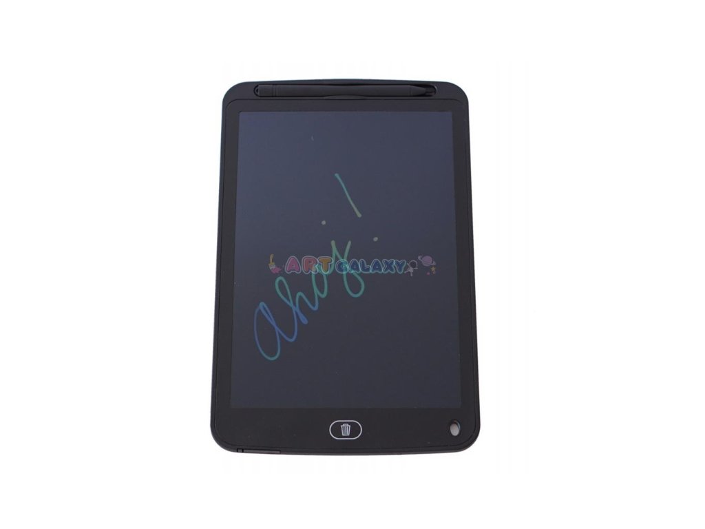Kreslící tabulka - tablet. Přiloženou tužkou nakresli obrázek na tabulku a zmáčknutím jednoho tlačítka ho smaž. Tabulka je ve tvaru úzkého tabletu. Je moderní a designová. Má barevný podklad - nakreslené obrázky jsou na ní barevné. Velikost 10,5 palce.