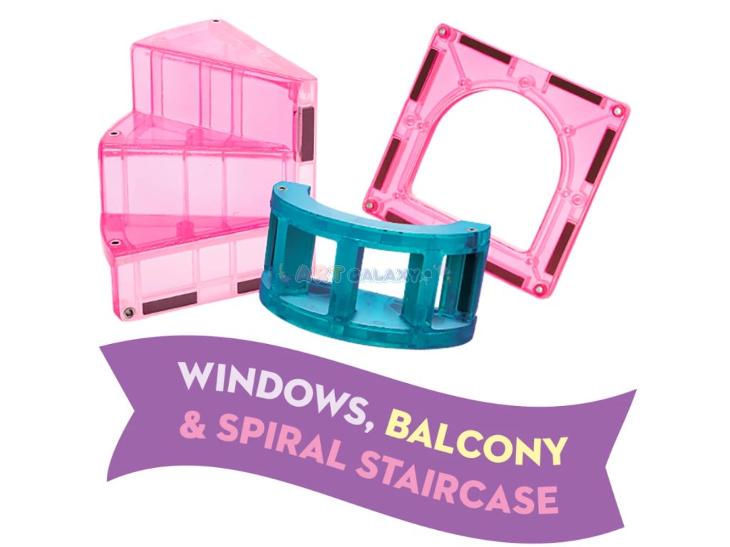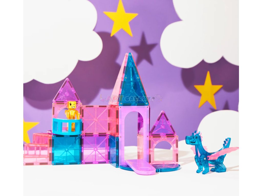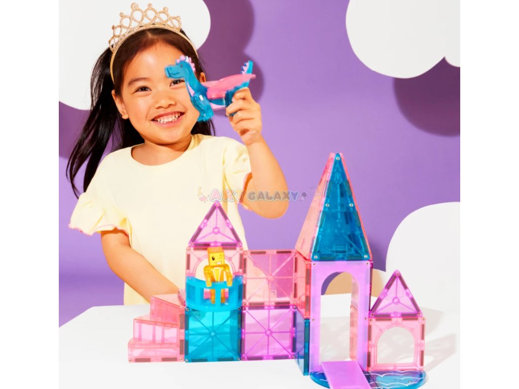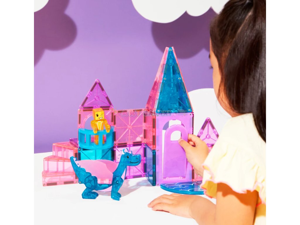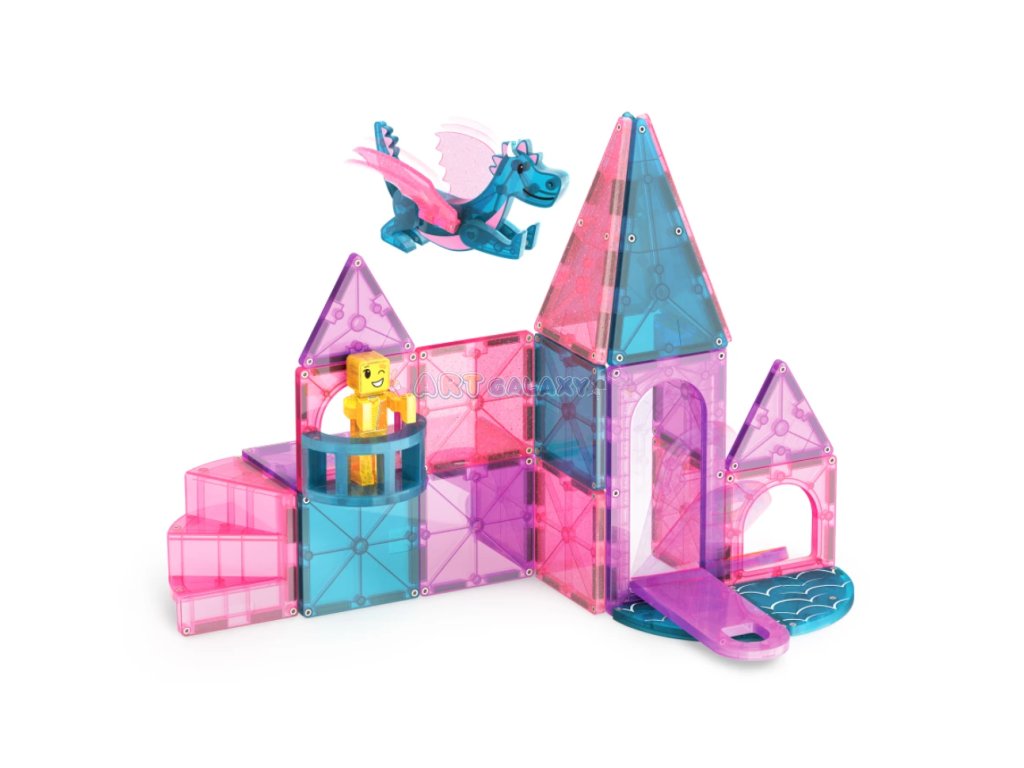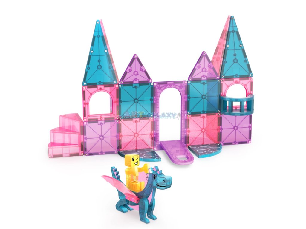 S magnetickou stavebnicí MAGNA-TILES Hrad se dětem splní jejich sny. Tato kouzelná stavebnice nabízí neomezené možnosti kreativní hry, při které si malé princezny mohou postavit svůj vlastní pohádkový svět. Funkční padací most, exkluzivní figurka draka a jedinečné prvky, jako je točité schodiště a balkon, přinášejí do hry nový rozměr. Třpytivé dílky dodávají hře kouzlo a rozvíjejí fantazii dětí, které mohou stavět a vymýšlet dobrodružství podle svého gusta. Všechny dílky jsou kompatibilní s ostatními sadami MAGNA-TILES, včetně třpytivých sad Stardust a Classic.