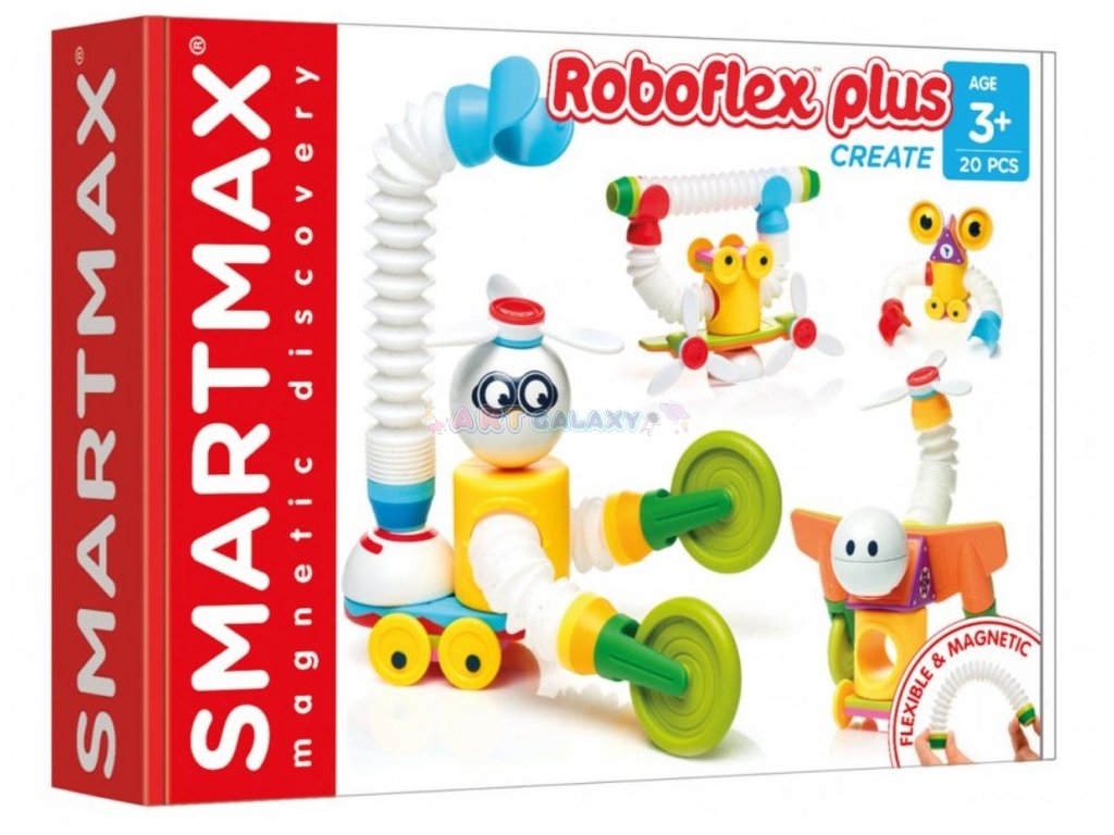 Kdo řekl, že roboti nejsou ohební? Buďte kreativní a vytvořte si vlastní flexibilní, bláznivé roboty! Je to jednoduché. Vyberte si magnetické dílky, ohněte je, roztáhněte, spojte pomocí magnetů dohromady a hrajte si! Nové, flexibilní, roztažitelné magnetické tyčky dodávají herní sadě SmartMax další rozměr. Chcete, aby váš robot skákal, létal či zvedal činku? Sada Roboflex plus obsahuje 20 magnetických dílků